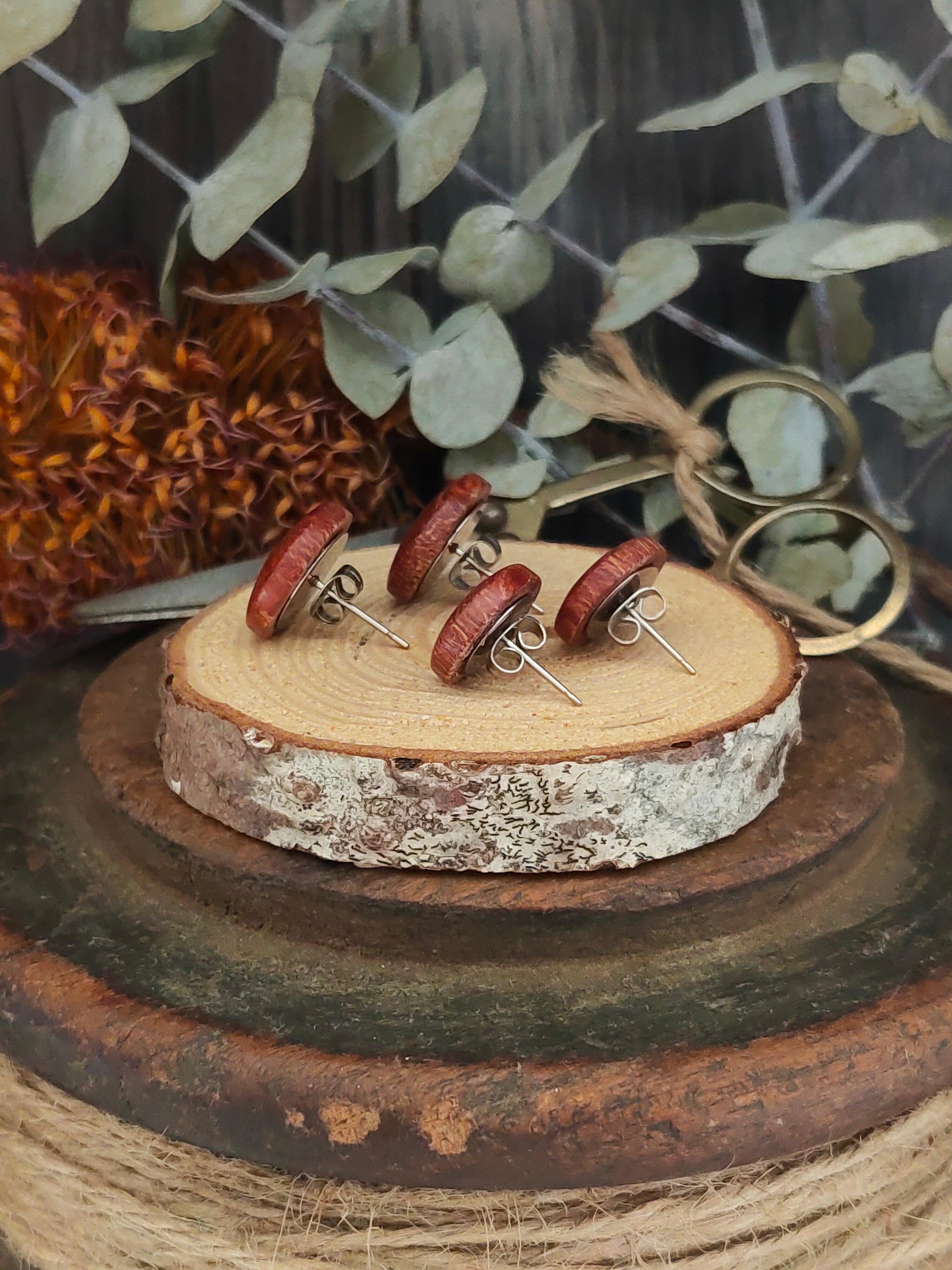 The Coastal Banksia earring's have an incredible depth of colour and striking natural grain. Sourced from a fallen tree in Mornington Peninsula they have been given a second life through hand turning techniques on my wood lathe.
