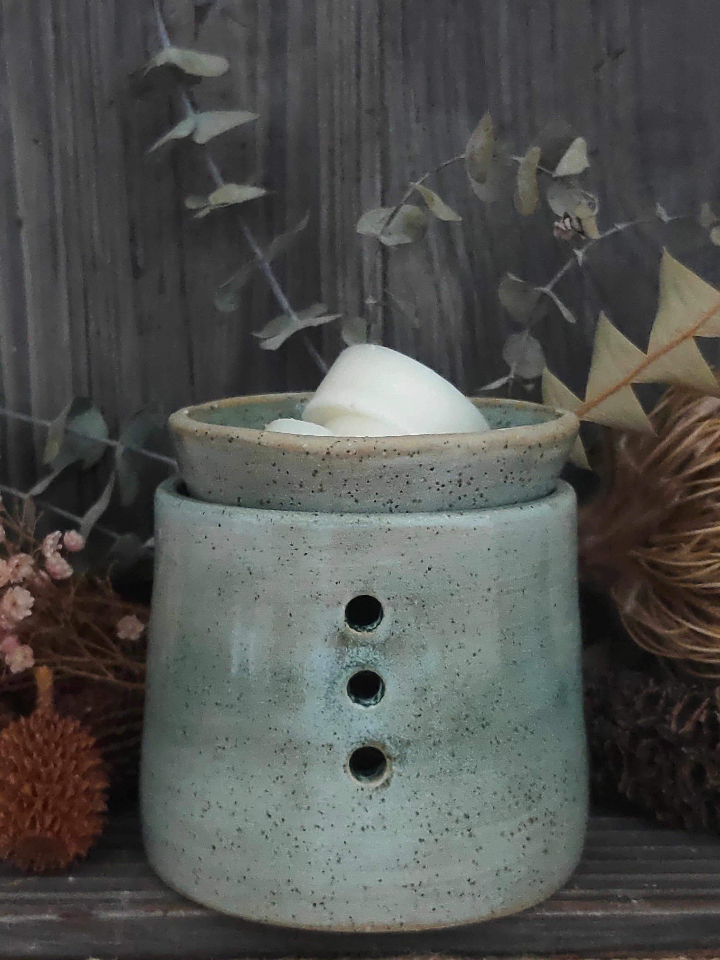 - Sage green wax burner- approximate size: 9.5cm tall x 9cm wide (bowl included)